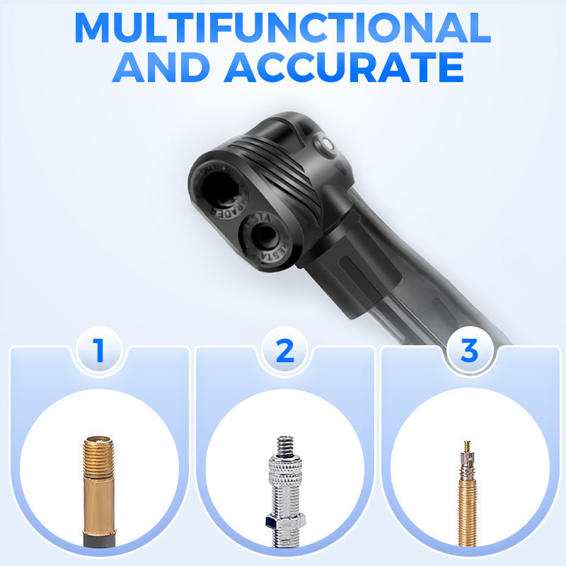 MONITOIMINEN JA TARKKA: Universaali venttiilikärki sopii erilaisille venttiileille – ei tarvetta muunnoksille. Sopii polkupyörille, moottoripyörille, sähköpyörille ja urheilupalloille. Analoginen painemittari tarjoaa reaaliaikaisia lukemia tarkasti.