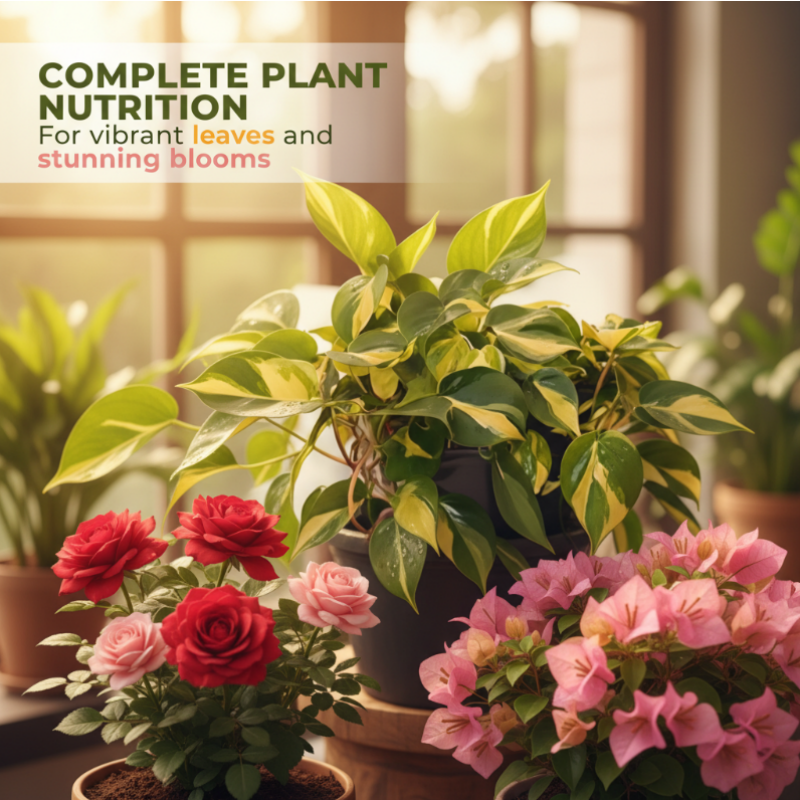 FLEURS ET FEUILLAGE AMÉLIORÉS - Favorise la croissance de fleurs plus grandes et plus colorées et stimule le développement de feuilles vertes luxuriantes et brillantes. En stimulant la photosynthèse et en fournissant des minéraux essentiels, il aide vos plantes à atteindre leur plein potentiel esthétique.