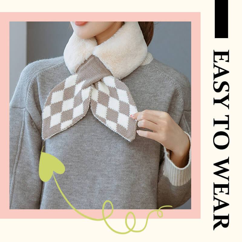 Écharpe à col en fourrure imprimée à motifs cœur pêche, pied-de-poule, pois et losanges, facile à porter et parfaitement adaptée aux manteaux en fourrure, aux doudounes et à toutes les vestes, etc.