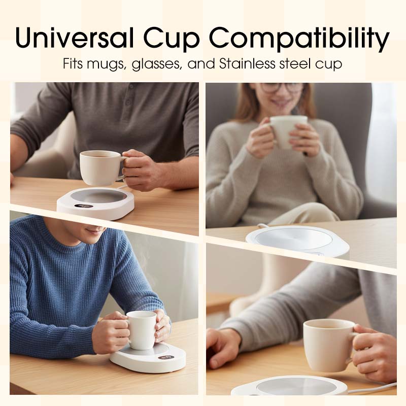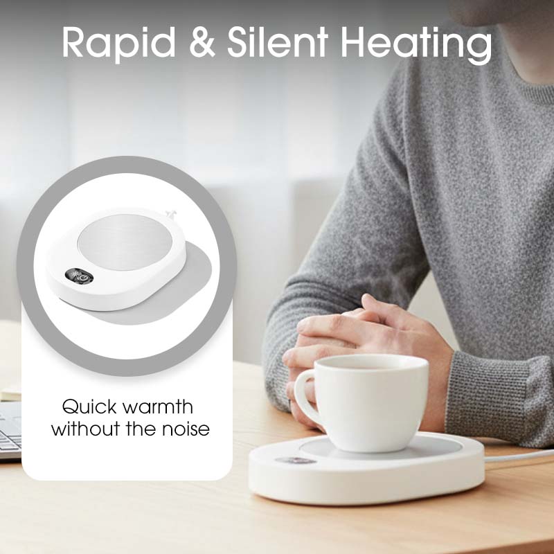 CHAUFFAGE RAPIDE ET SILENCIEUX – La plaque chauffante durable en alliage d'aluminium réchauffe votre boisson rapidement et efficacement. Elle fonctionne silencieusement, vous permettant de travailler ou de vous détendre sans bruits gênants, tandis que votre boisson reste parfaitement chaude.