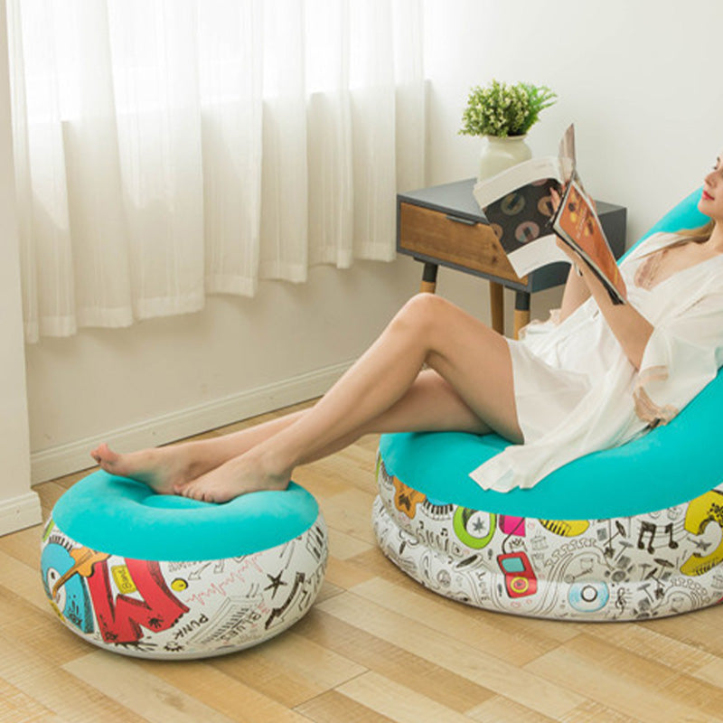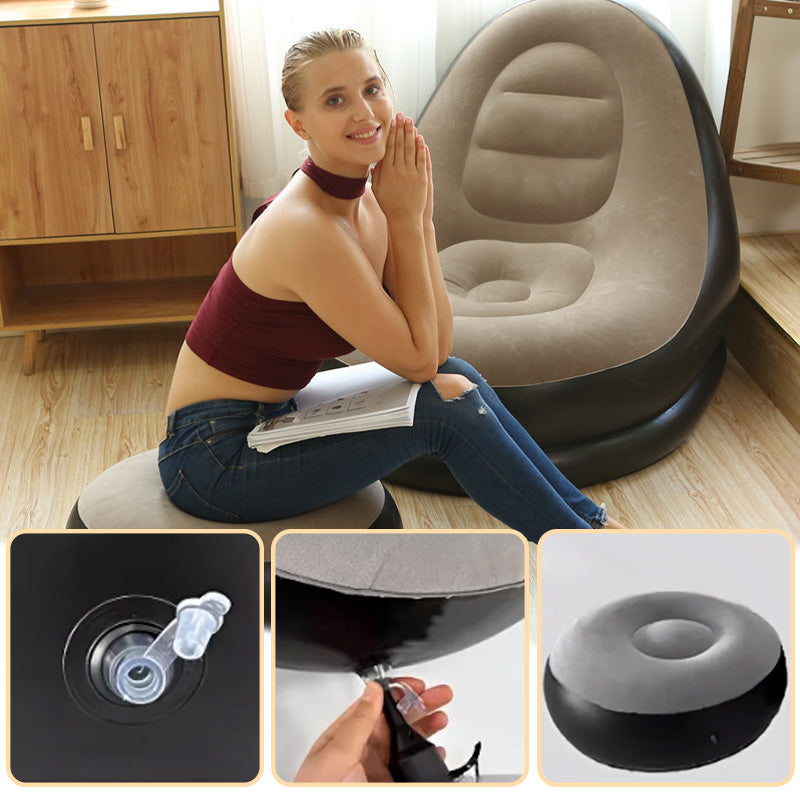 Paksunnettu täytettävä säkkituoli aikuisille jalkajakkaralla on täydellinen lahja, joka yhdistää mukavuuden, tyylin ja käytännöllisyyden. Nosta rentoutumiskokemuksesi uudelle tasolle tällä innovatiivisella, ylivertaiseen mukavuuteen ja helppokäyttöisyyteen suunnitellulla puhallettavalla tuolilla.