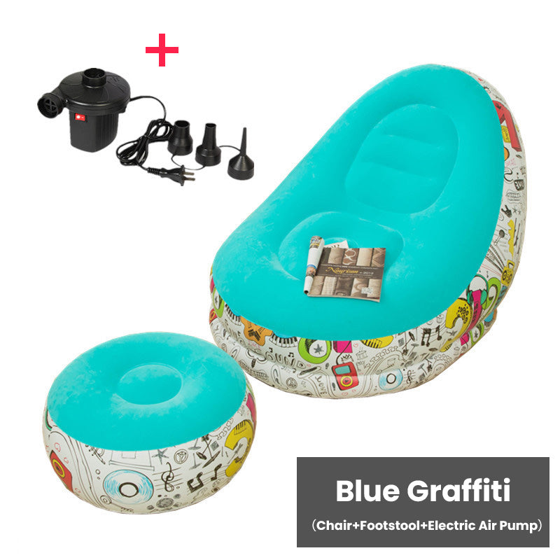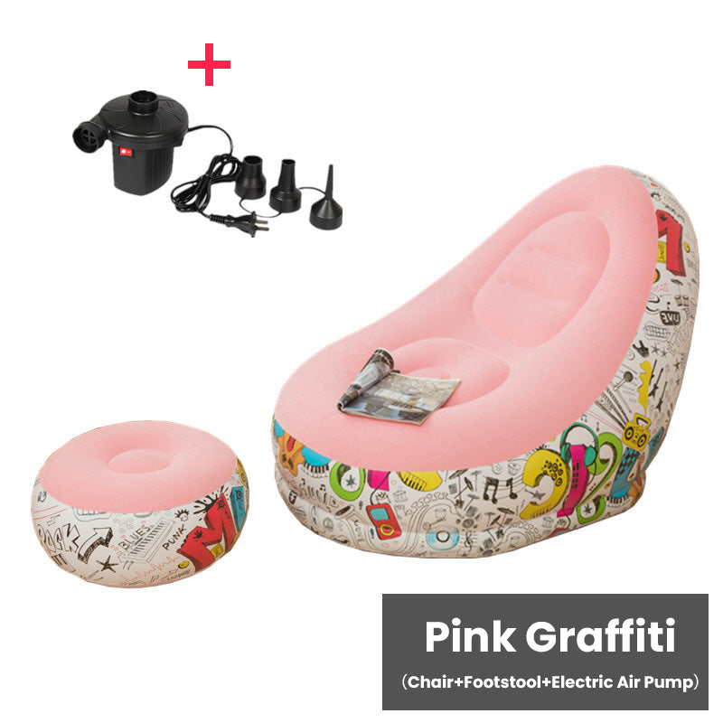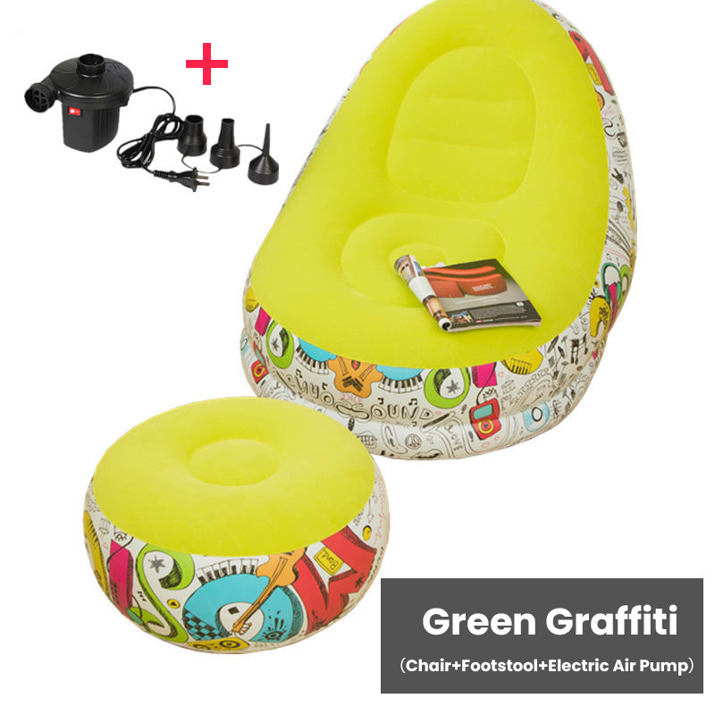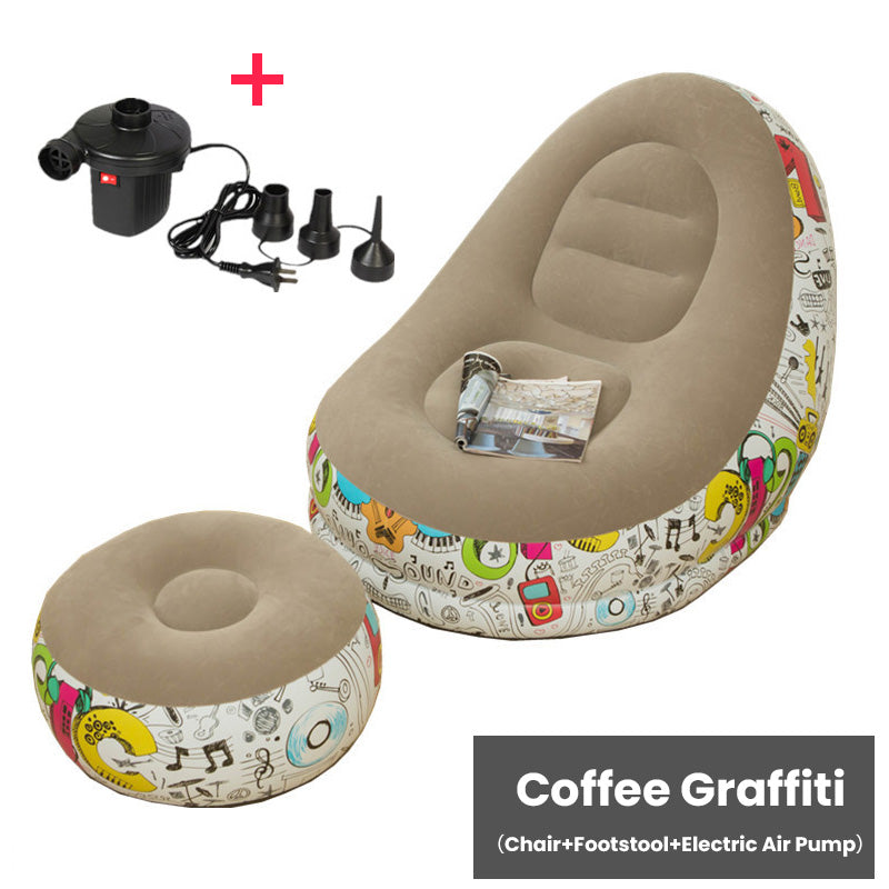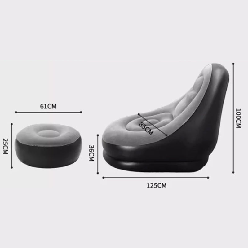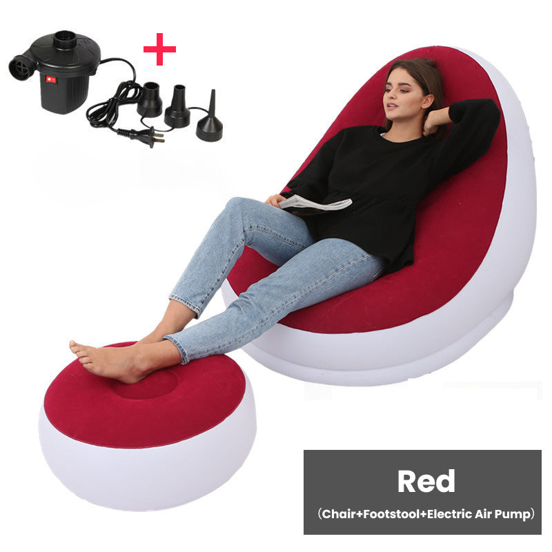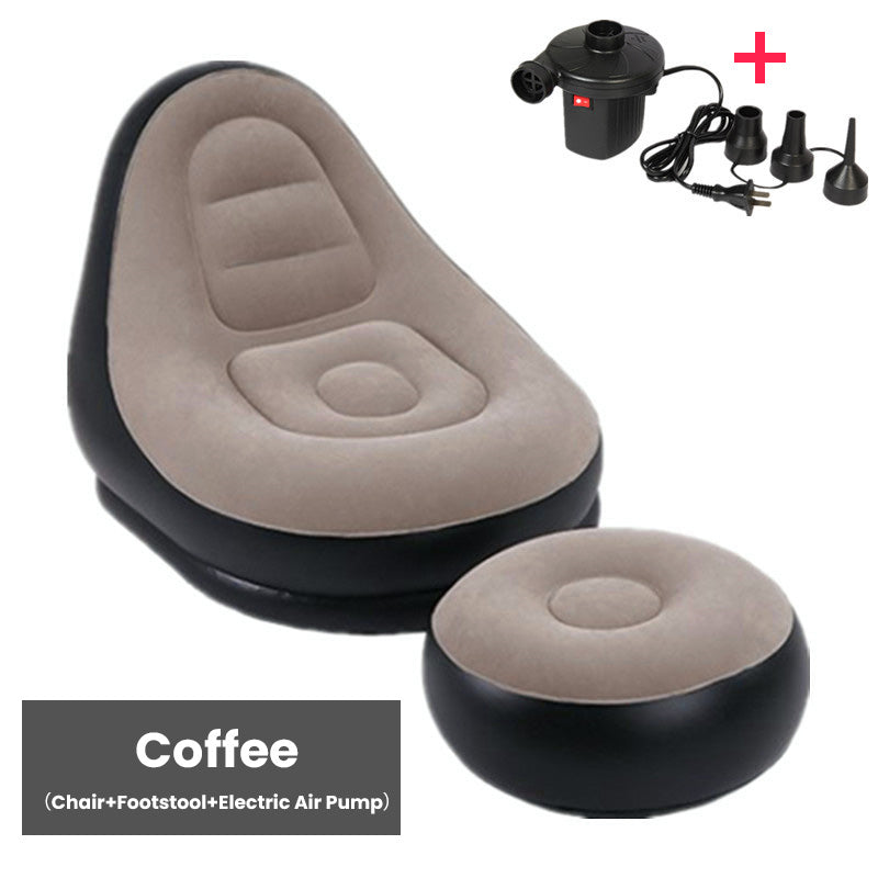TÄYDELLINEN SETTI - Tämä harkittu lahja toimitetaan täydellisenä settinä, sisältäen tuolin, jalkajakkaran ja sähköisen ilmapumpun. Jalkajakkaran avulla voit nostaa jalat ylös ja nauttia maksimaalisesta mukavuudesta, muuttaen vapaa-aikasi ylelliseksi kokemukseksi. Mukana tuleva sähköinen ilmapumppu takaa vaivattoman täytön, joten voit järjestää rentoutumispaikkasi hetkessä.