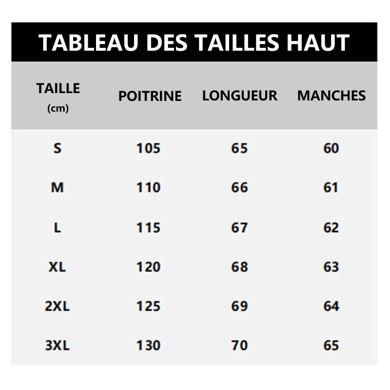Si votre haut et votre pantalon ne sont pas de la même taille, veuillez sélectionner la taille finale en fonction de la taille de votre haut !